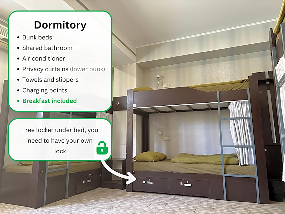 This bed in dormitory has a private entrance and air conditioning.